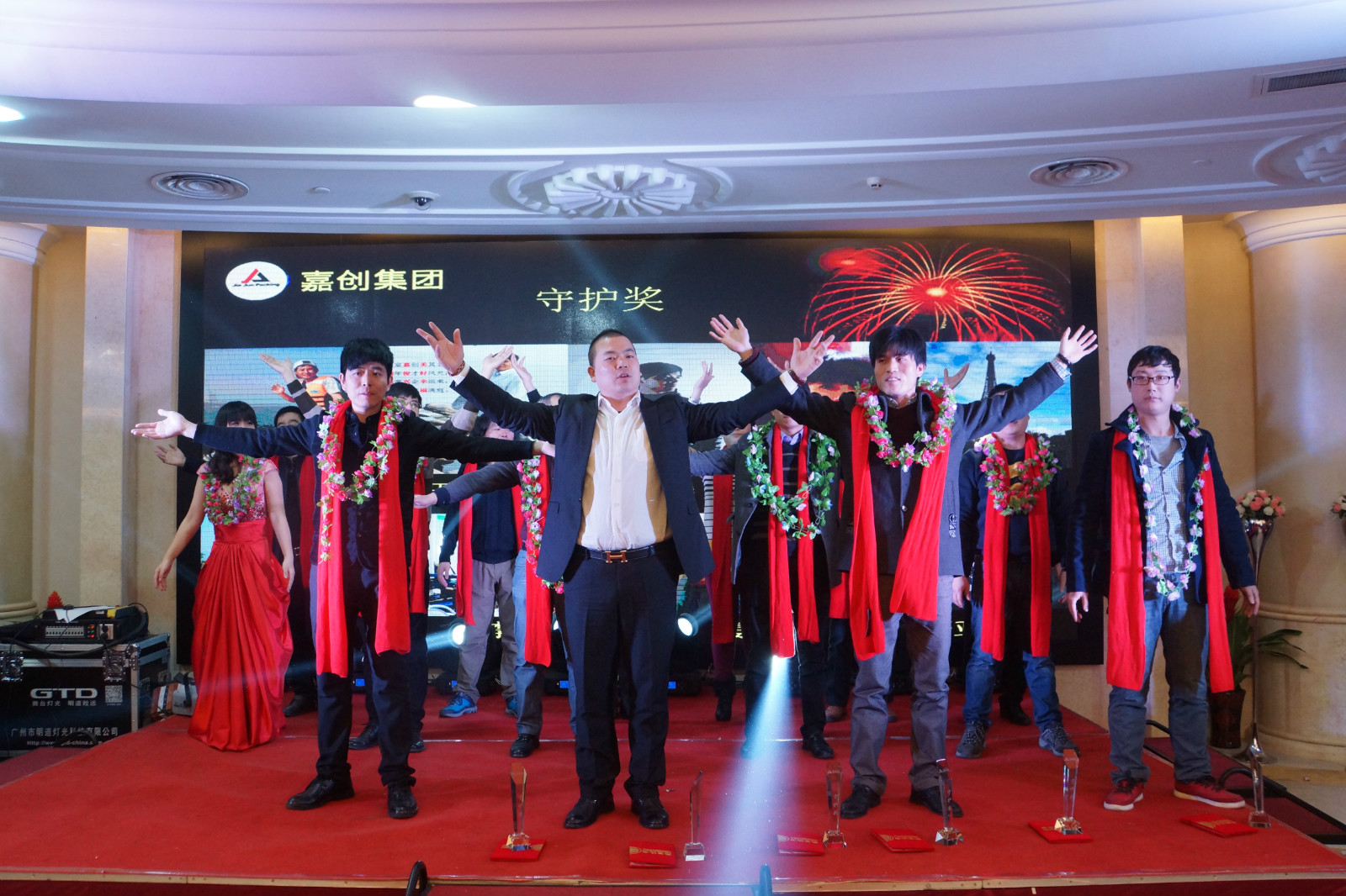 晨會(huì)展示完畢,董事長(zhǎng)發(fā)表致辭,回顧一年來(lái)嘉俊走過(guò)的道路,有成功的喜悅,也有對(duì)不足的反思,更有對(duì)嘉俊給予幫助的家人們的無(wú)限感恩。溫情的致辭完畢,各個(gè)部門(mén)帶來(lái)的豐富多彩的節(jié)目表演讓整個(gè)宴會(huì)現(xiàn)場(chǎng)達(dá)到一個(gè)又一個(gè)高潮。