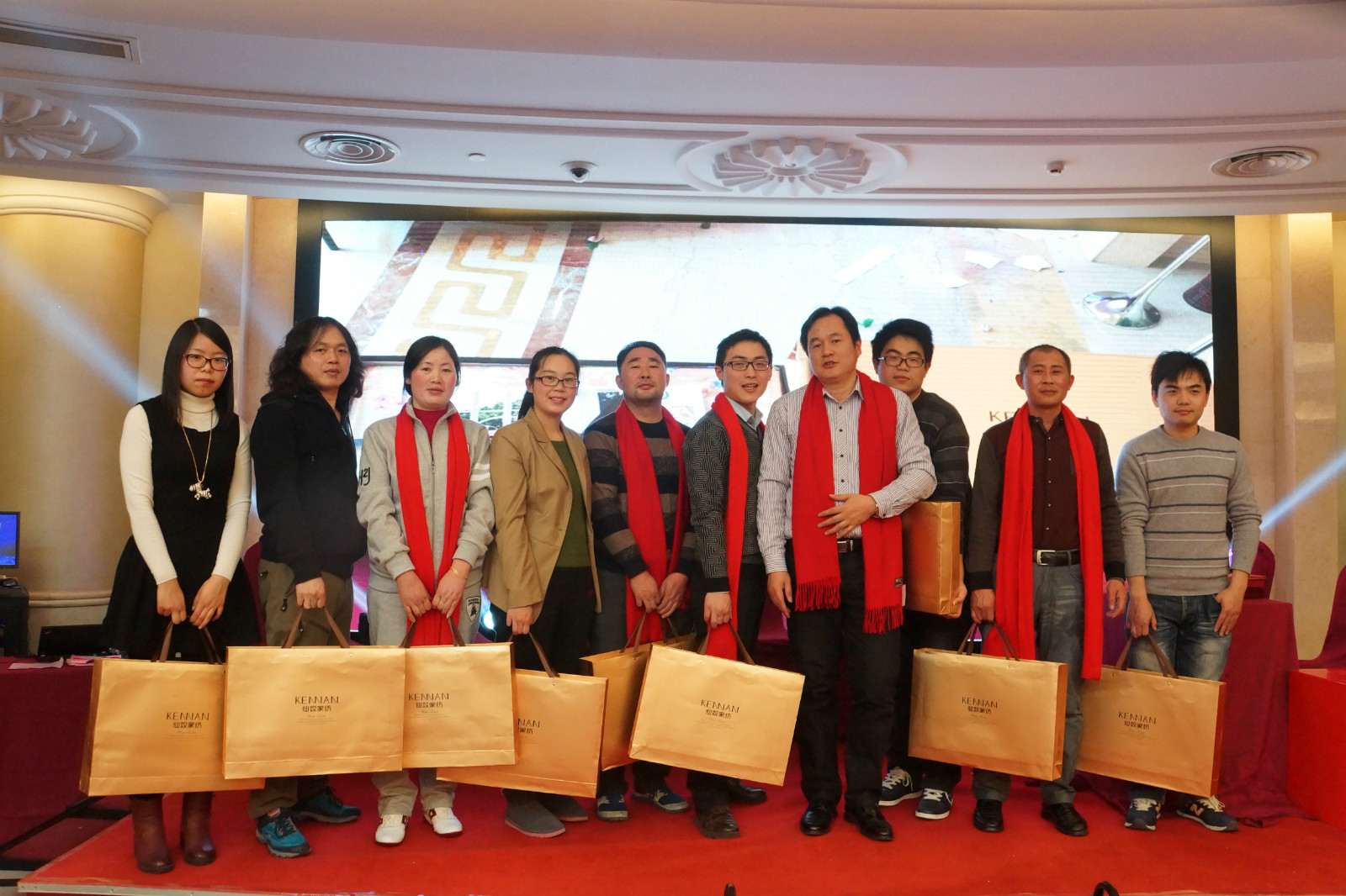 除了精彩的表演,嘉俊還設(shè)置了頒獎(jiǎng)環(huán)節(jié)、豐富誘人的禮品來(lái)回報(bào)辛勤工作一年的家人。溫暖的家紡四件套、富貴吉祥的金條、銀條等。歡笑聲、喝彩聲沸騰了整個(gè)宴會(huì)廳。