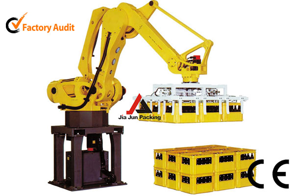 機(jī)械手碼垛機(jī)適應(yīng)于化工、飲料、食品、啤酒、塑料、空調(diào)等生產(chǎn)企業(yè)對(duì)紙箱、袋裝、罐裝、盒裝、瓶裝等各種形狀的成品進(jìn)行裝箱和碼垛。