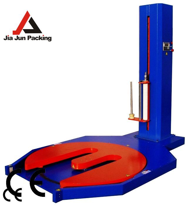 2.轉(zhuǎn)盤速度可調(diào)。正常的想法是認為轉(zhuǎn)速放快一點裹包的材料會節(jié)省一點,其實如果速度很快的話,在彈性薄膜還沒拉伸完成前就裹包上了,沒有充分的利用材料。